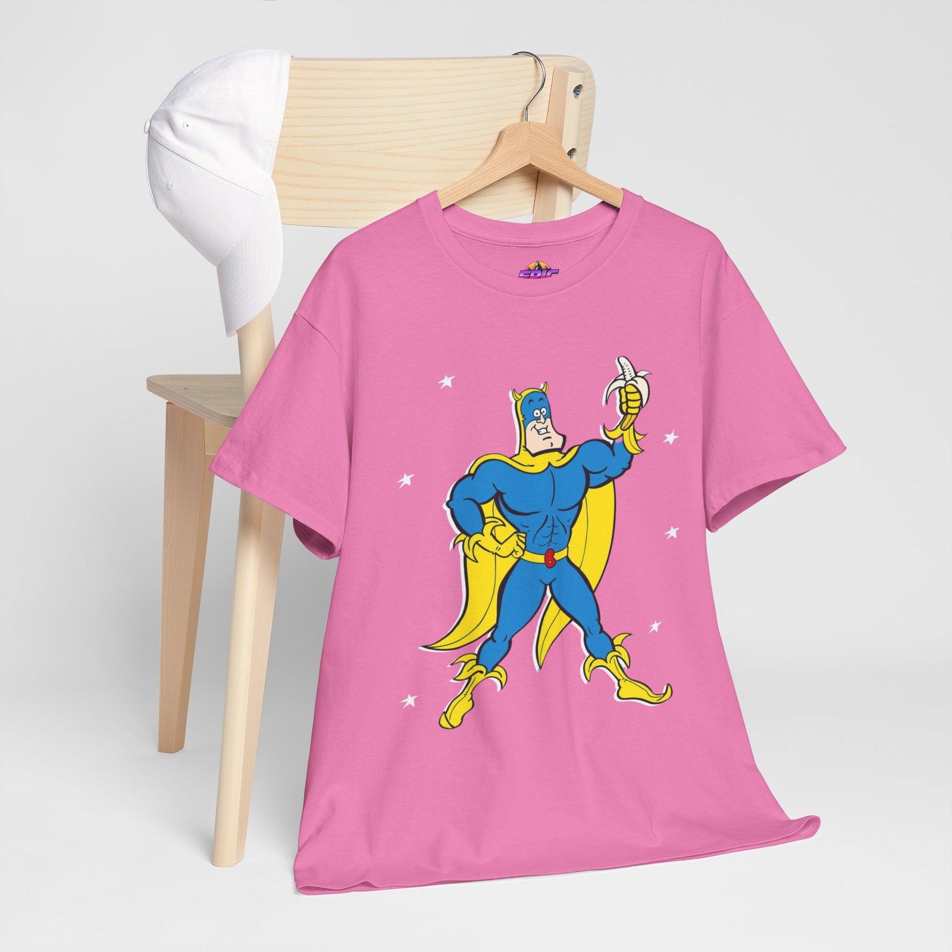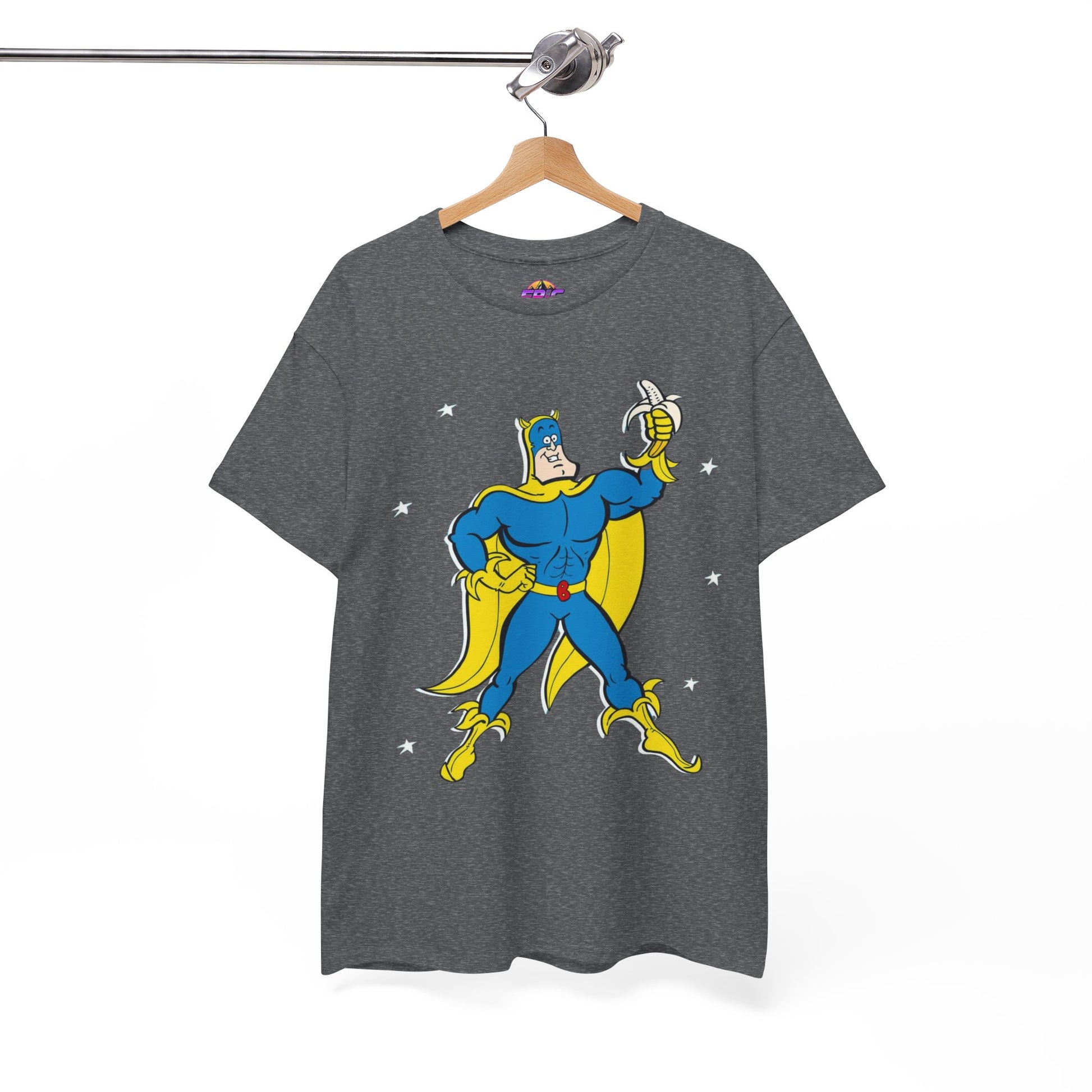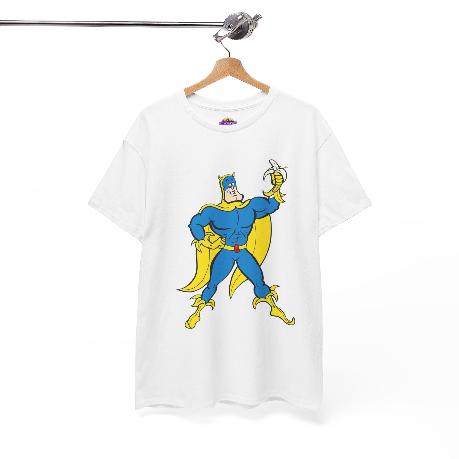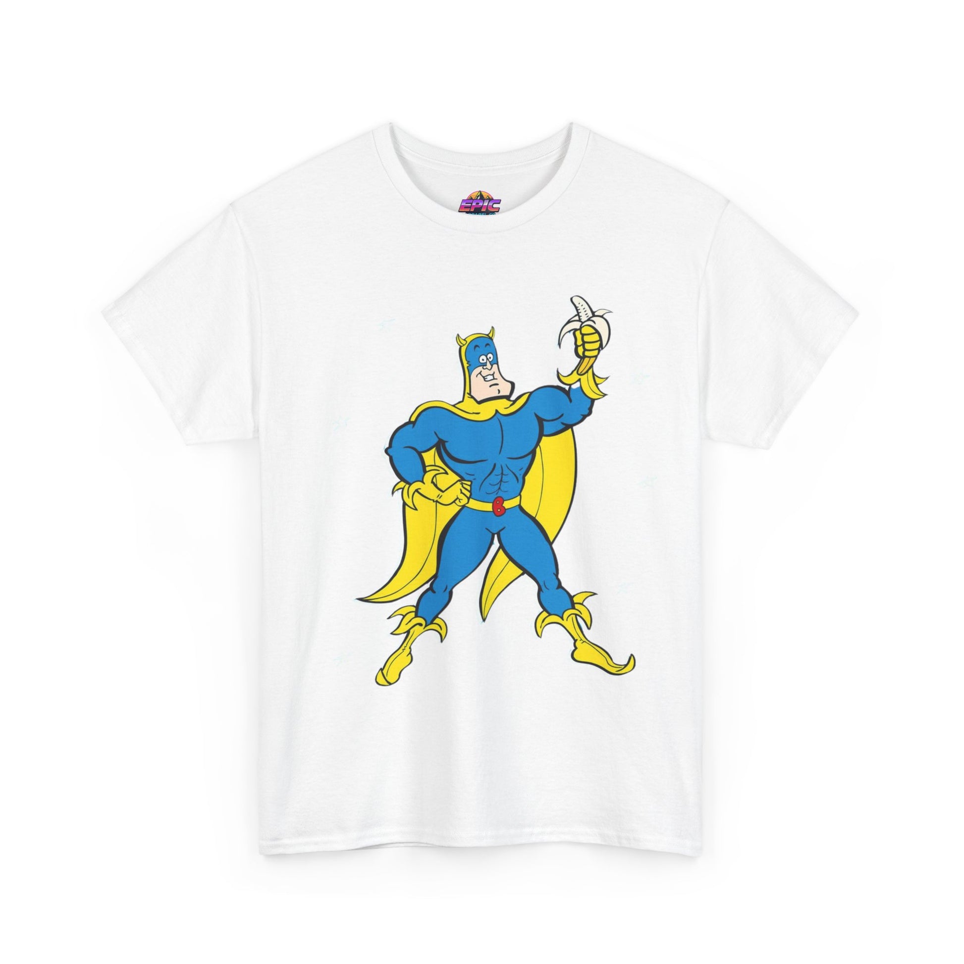 Celebrate the iconic and zany world of Bananaman with this unique tee, designed to bring a smile to every fan. Whether you're nostalgic for Saturday morning cartoons or simply love a bold, fun design, this shirt will keep you flying high!
