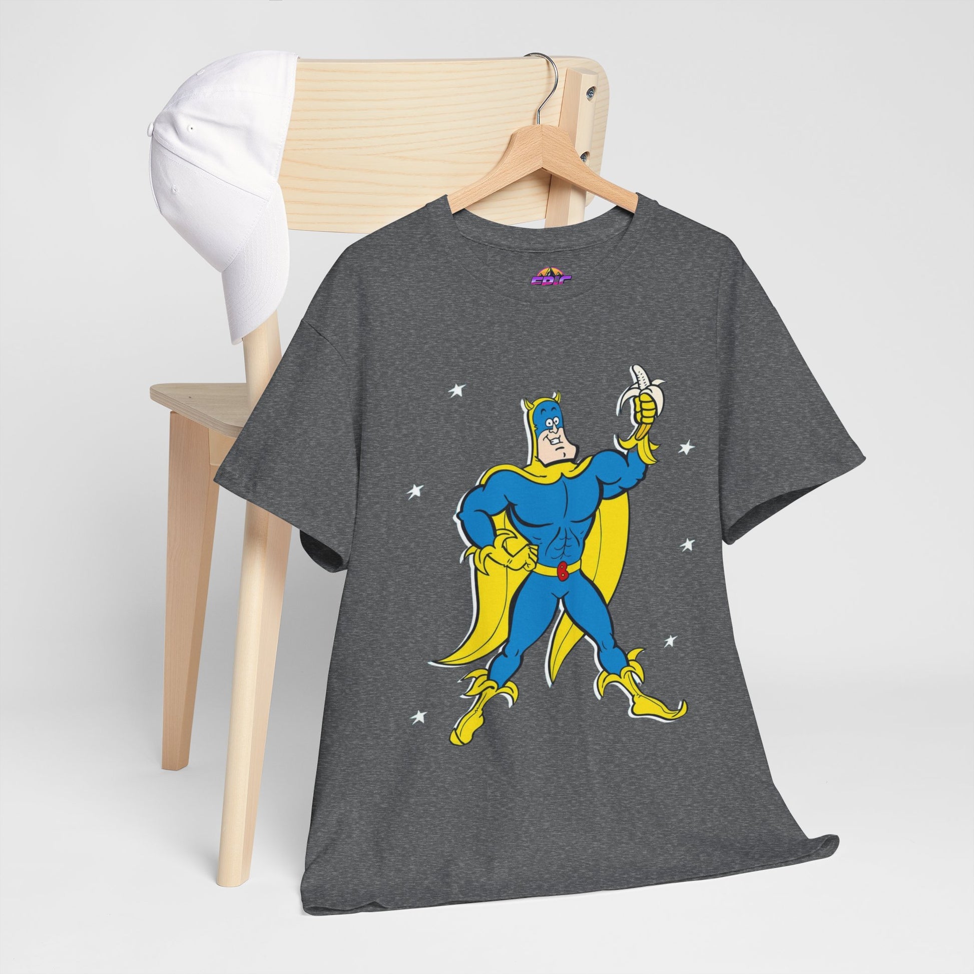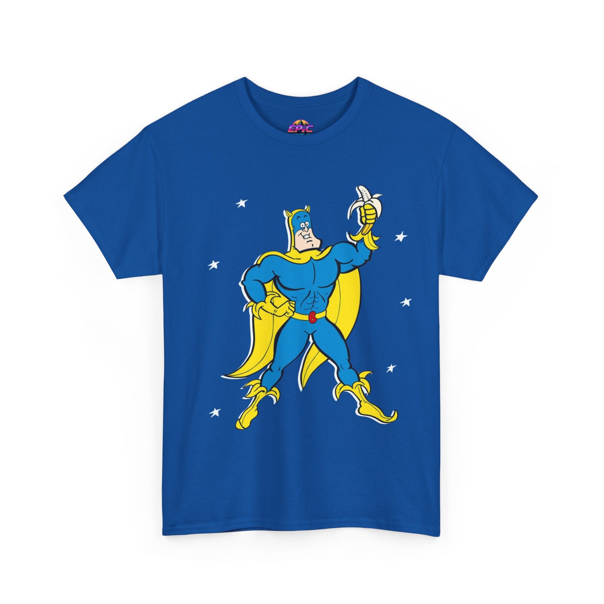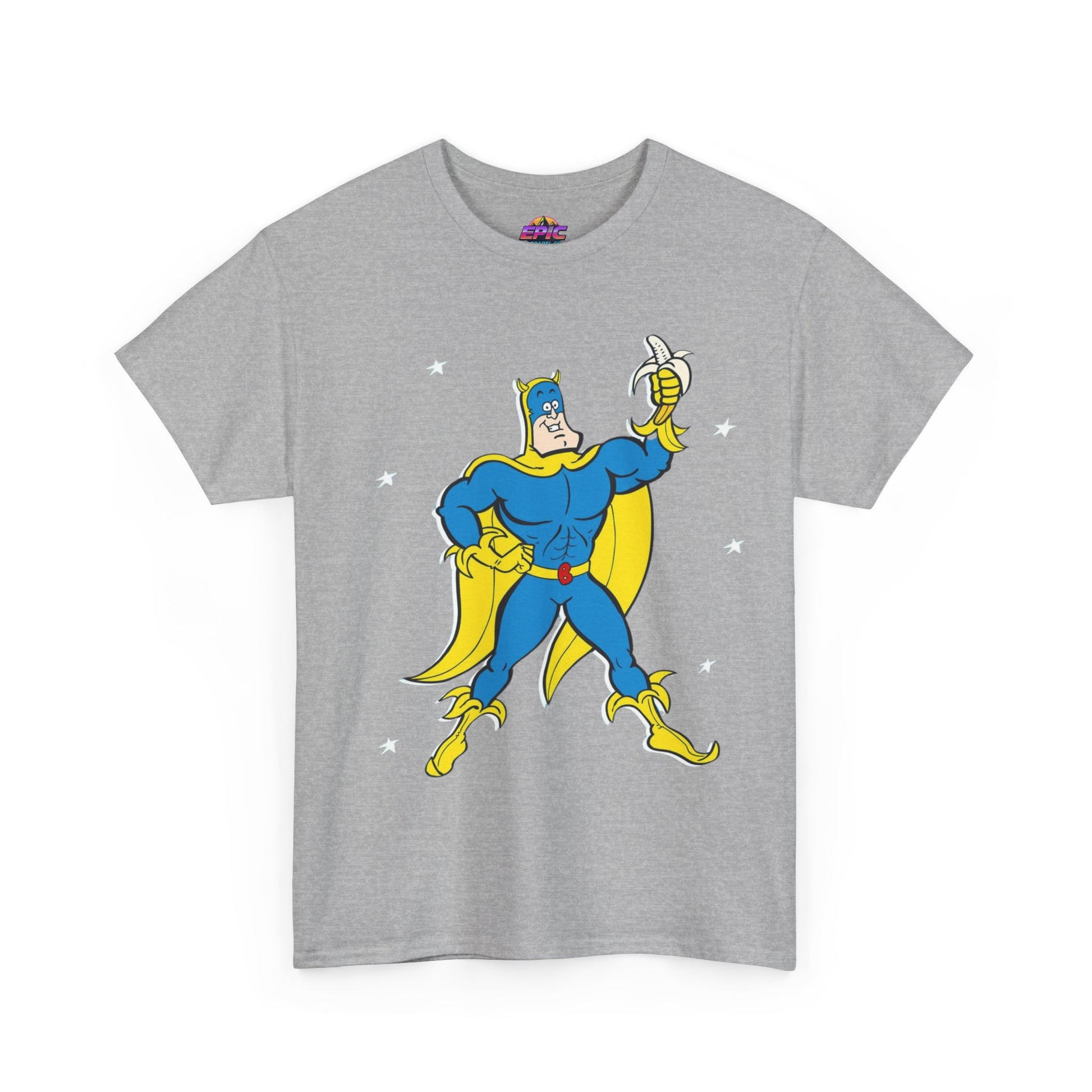 Celebrate the iconic and zany world of Bananaman with this unique tee, designed to bring a smile to every fan. Whether you're nostalgic for Saturday morning cartoons or simply love a bold, fun design, this shirt will keep you flying high!