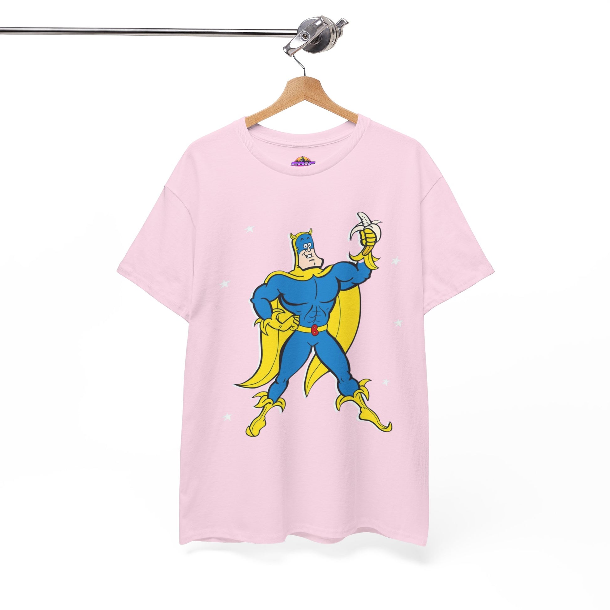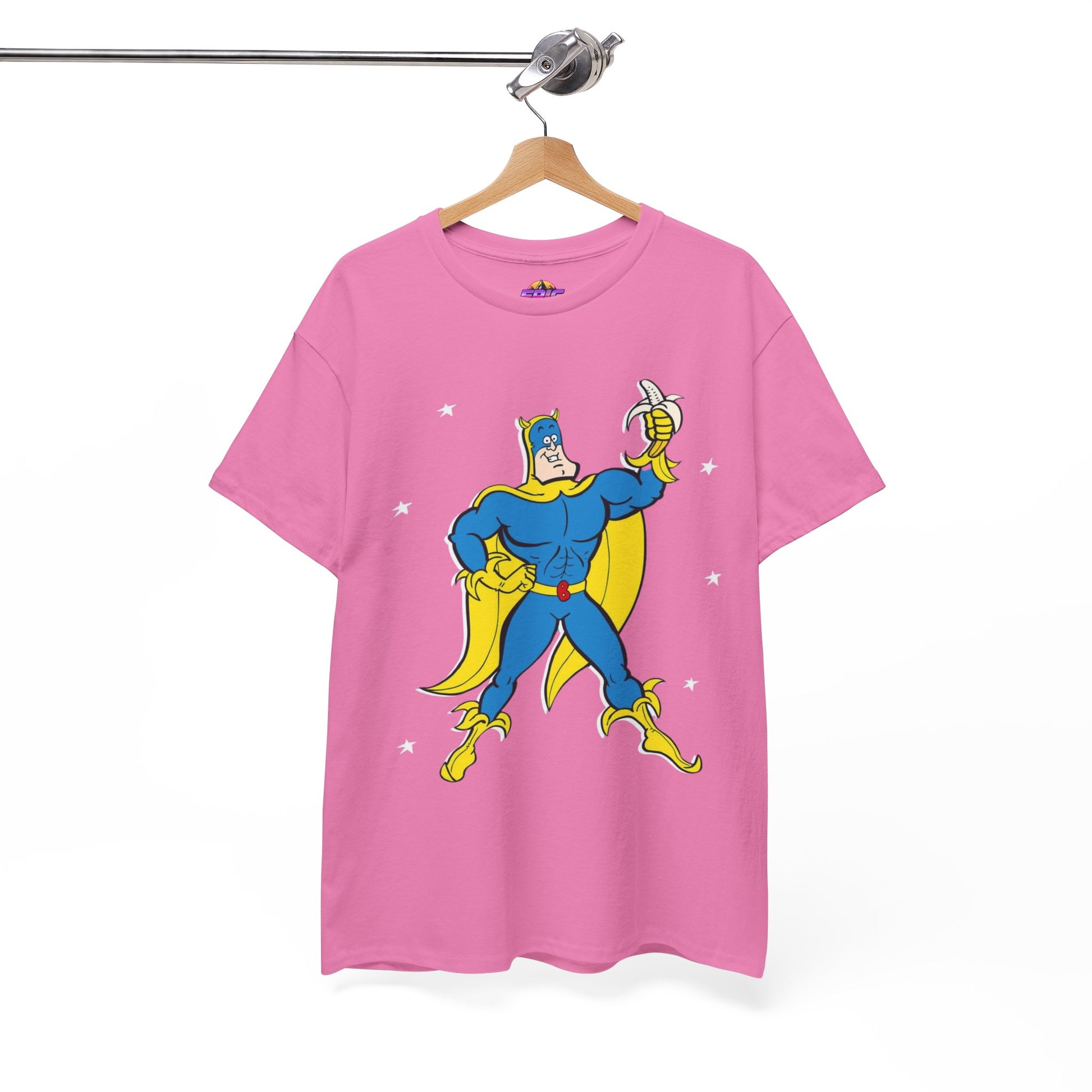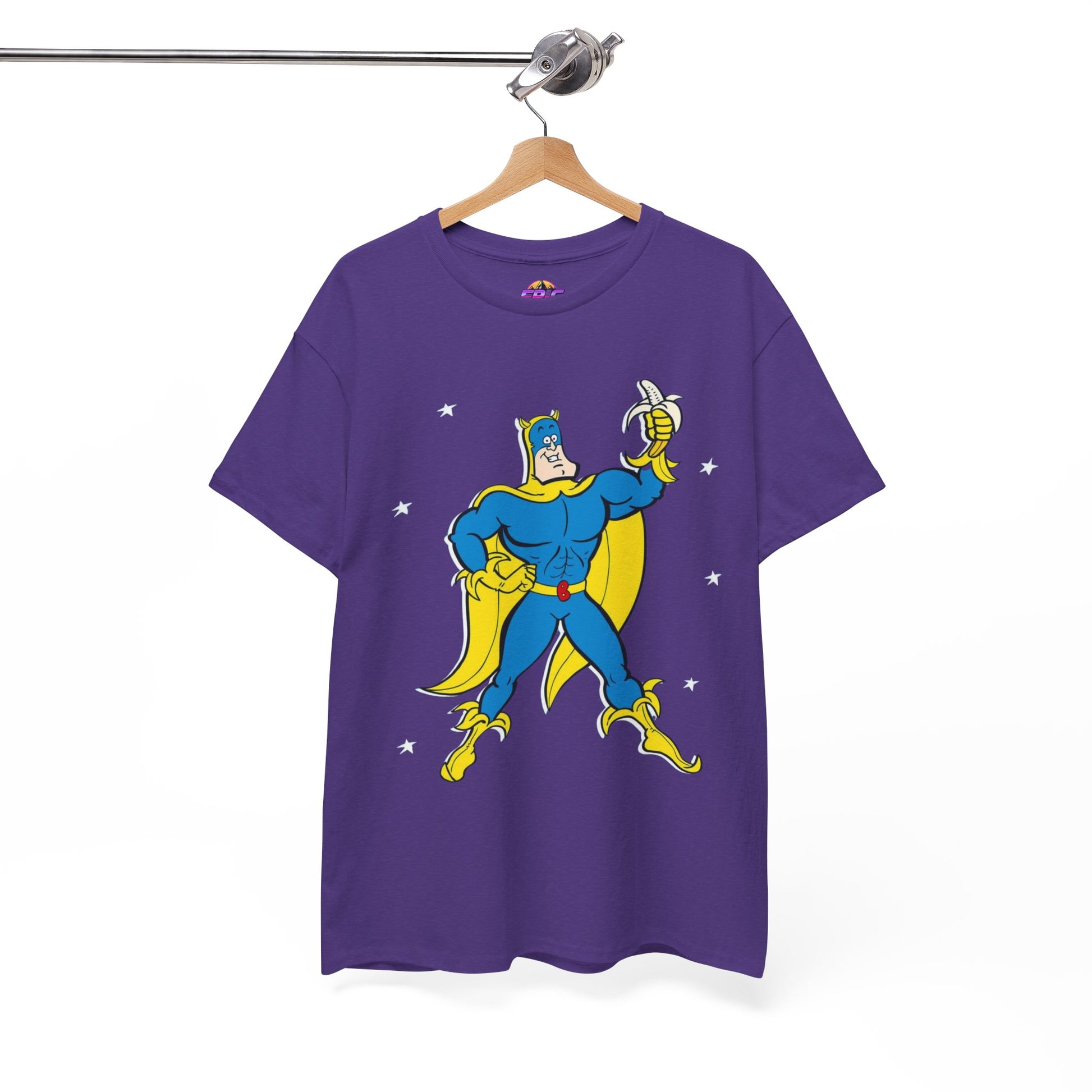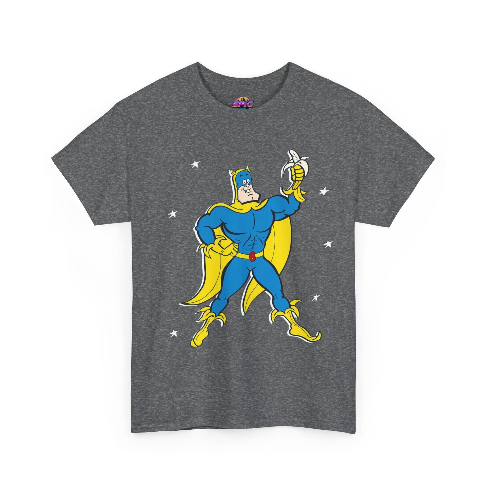 Celebrate the iconic and zany world of Bananaman with this unique tee, designed to bring a smile to every fan. Whether you're nostalgic for Saturday morning cartoons or simply love a bold, fun design, this shirt will keep you flying high!