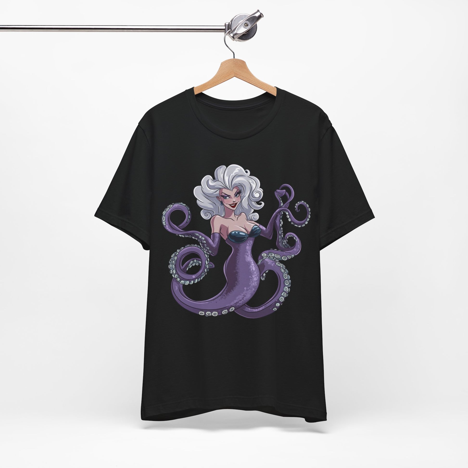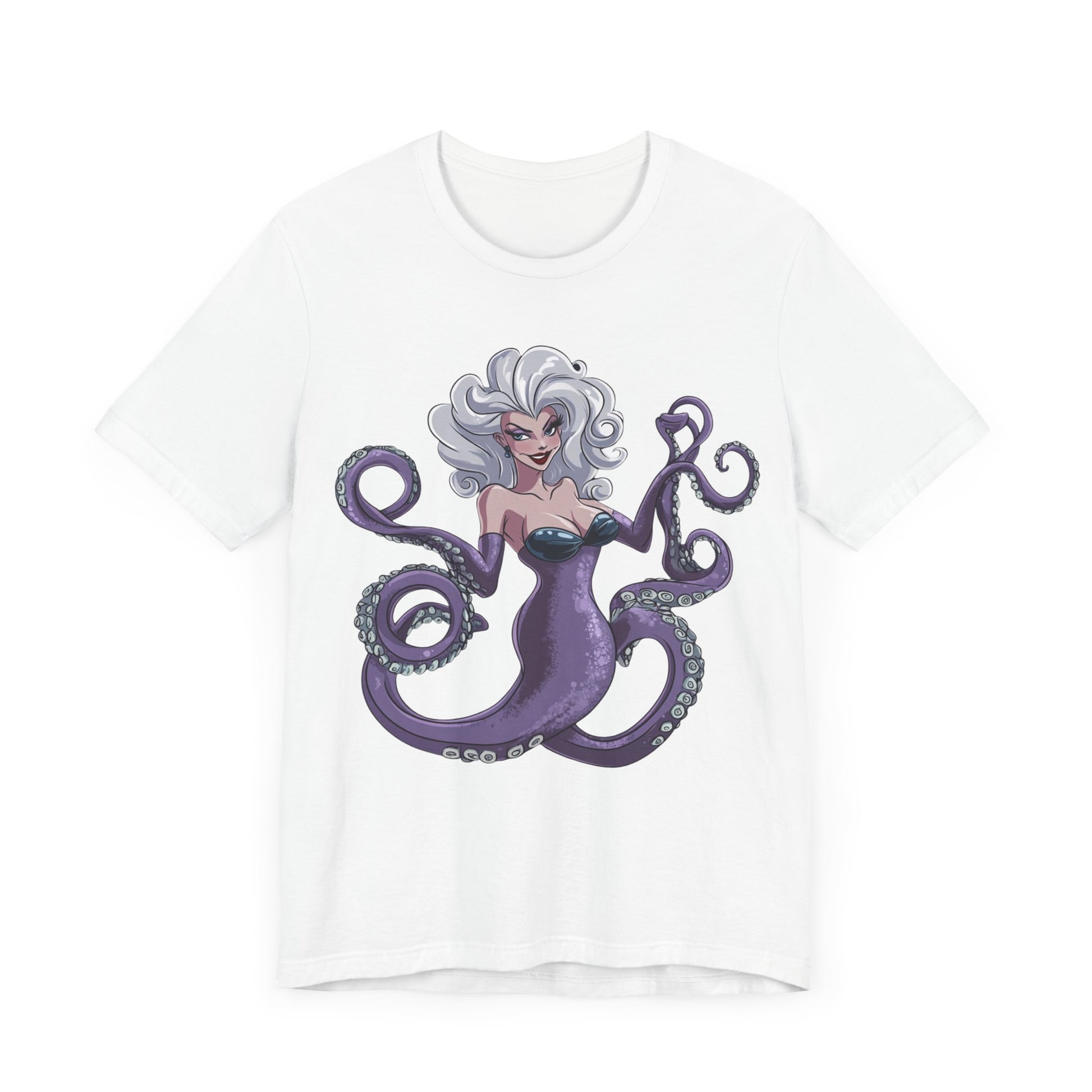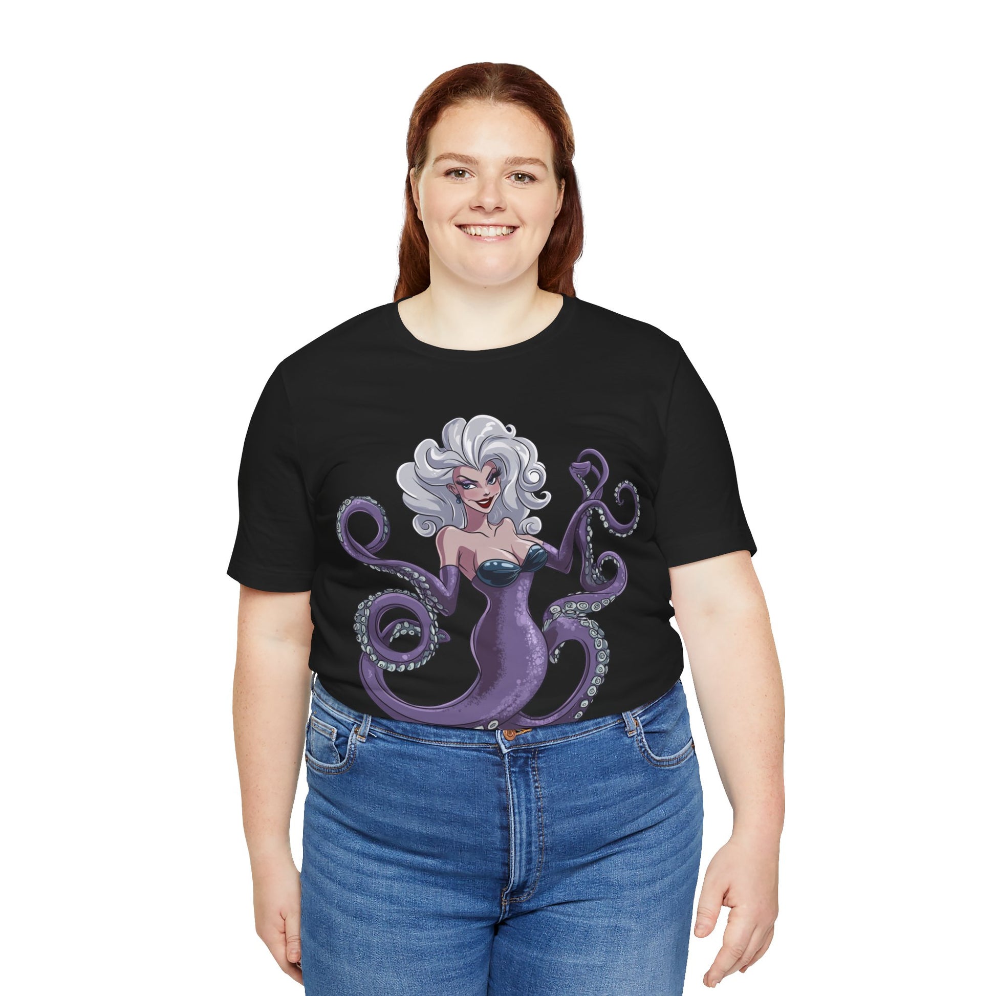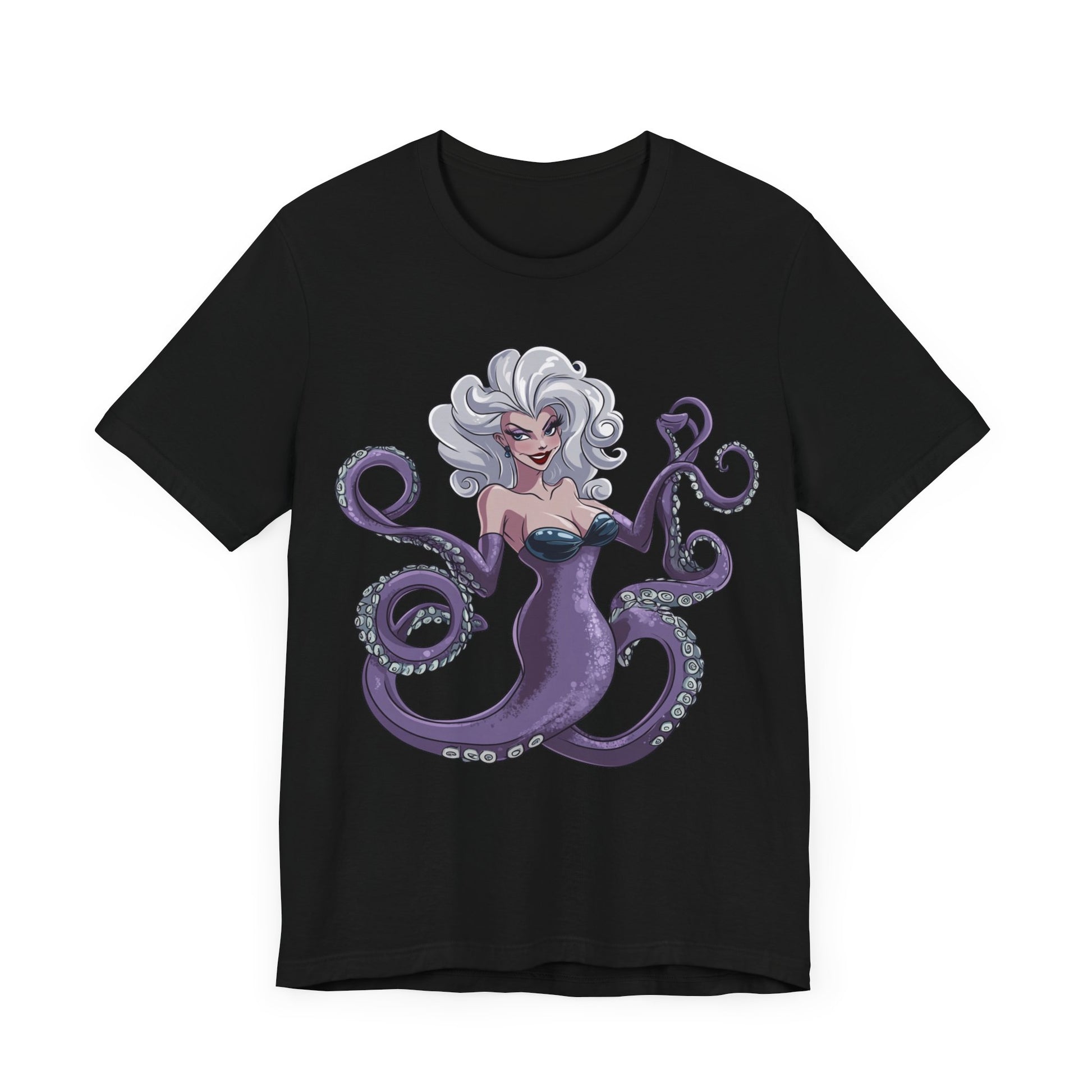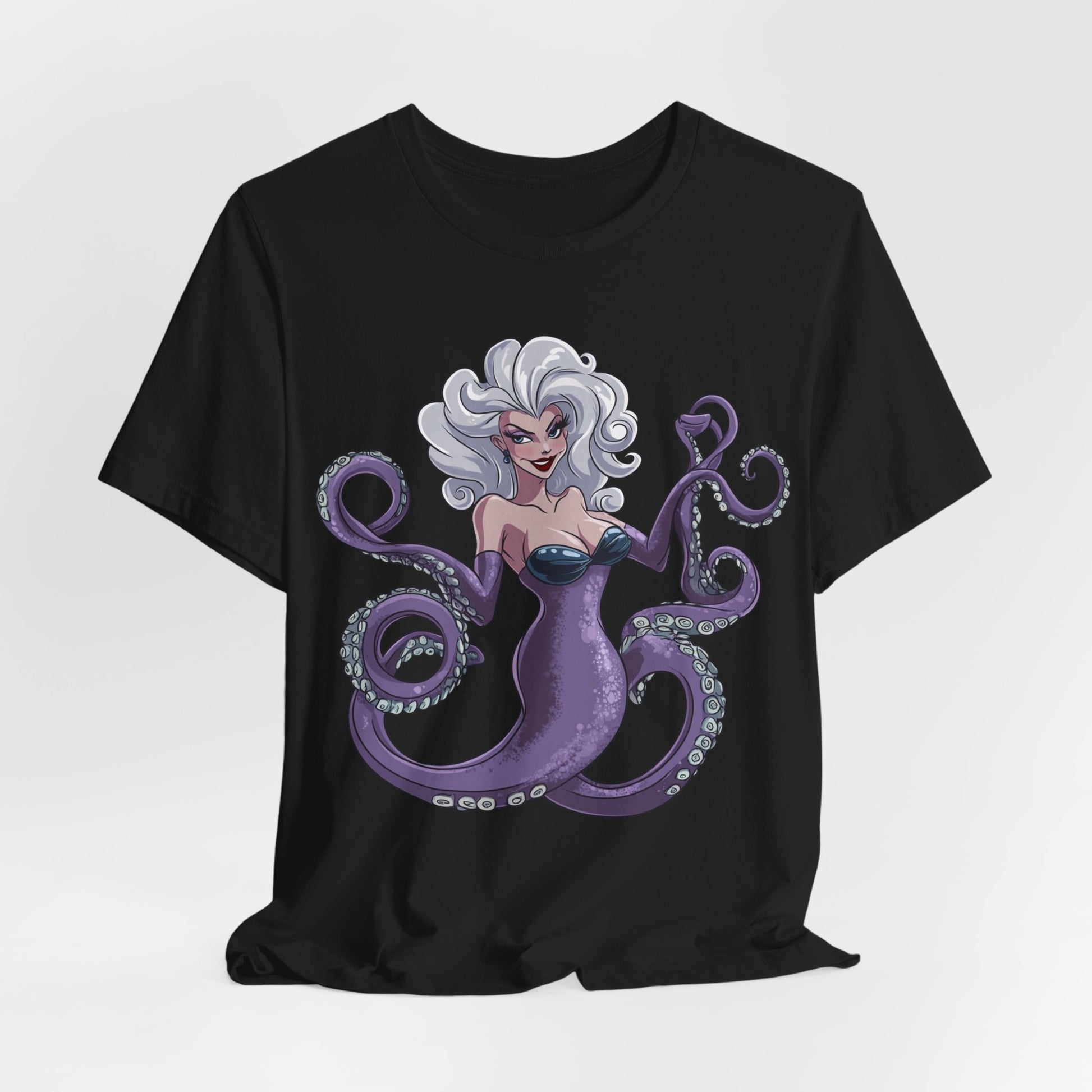 Make a splash with this bold and enchanting tee that’s as unforgettable as Ursula herself. Perfect for Disney fans, pop culture enthusiasts, or anyone looking to add a touch of undersea magic to their wardrobe!