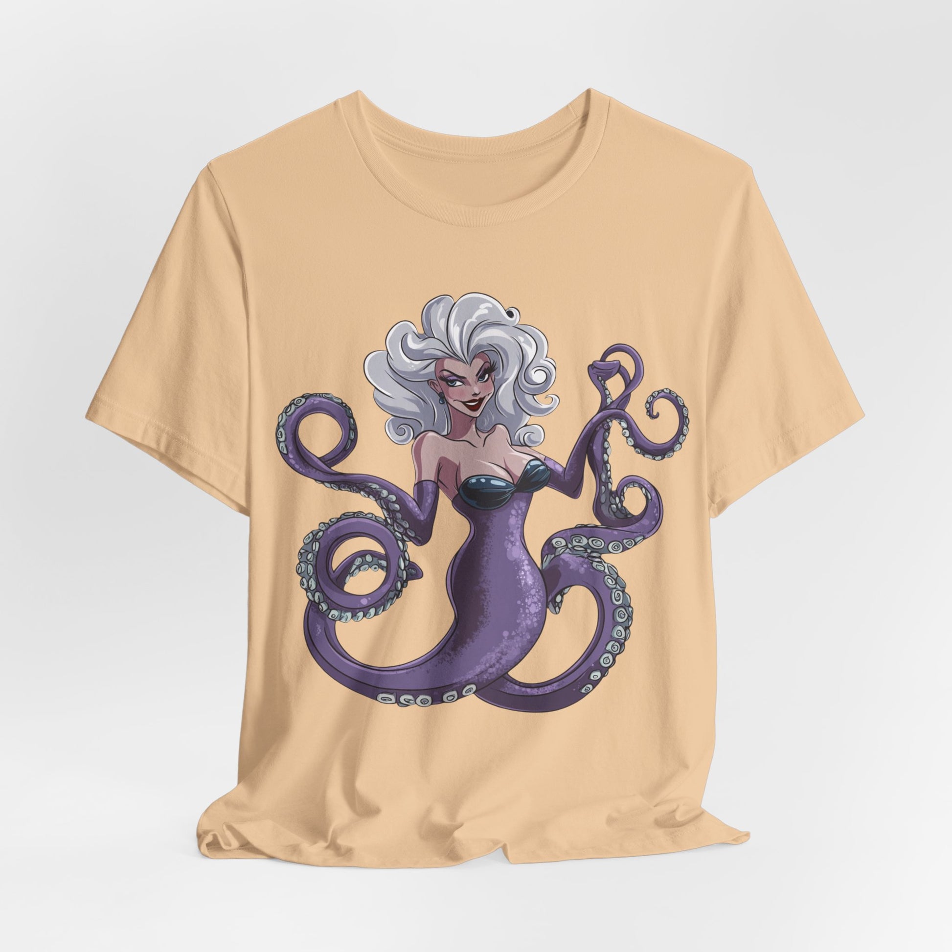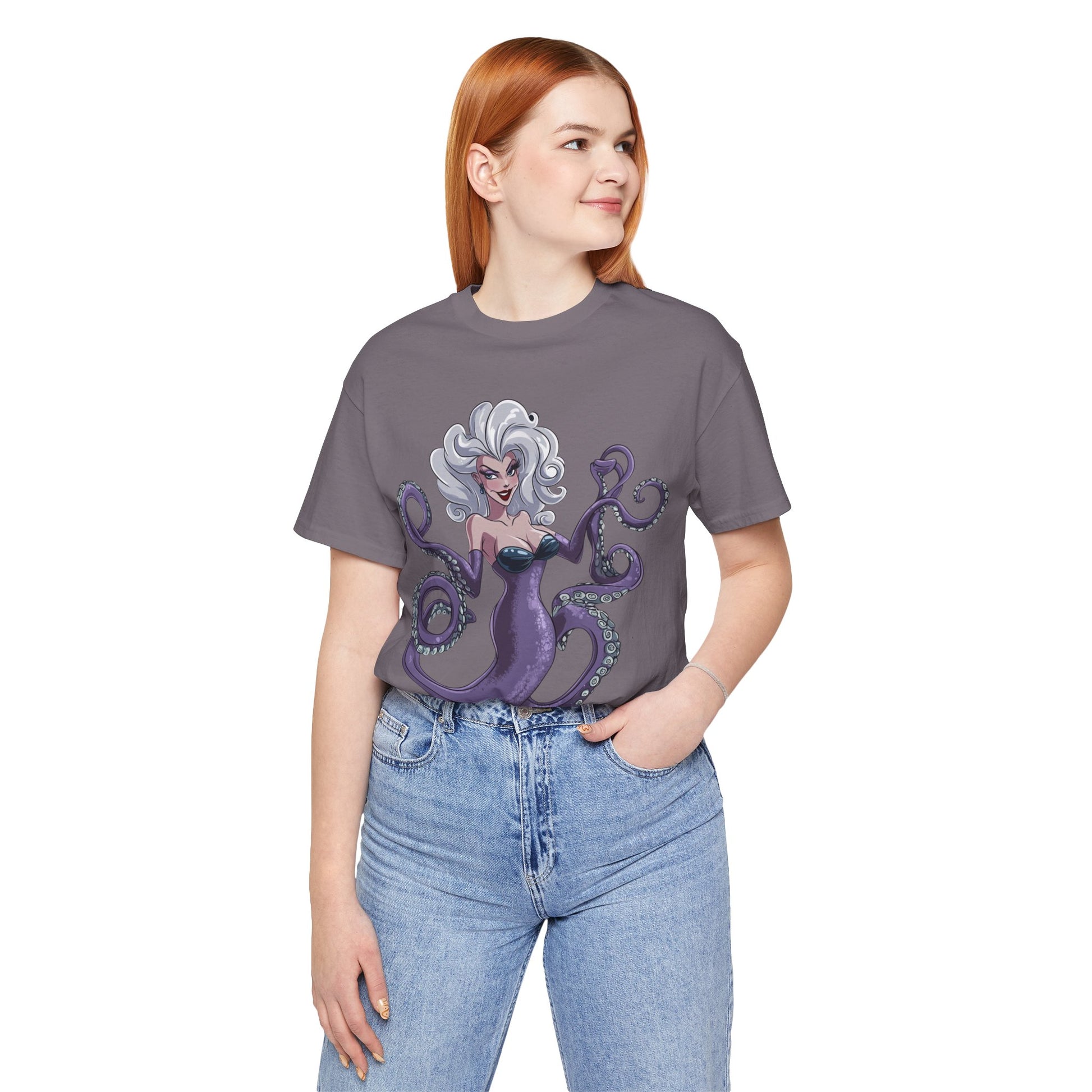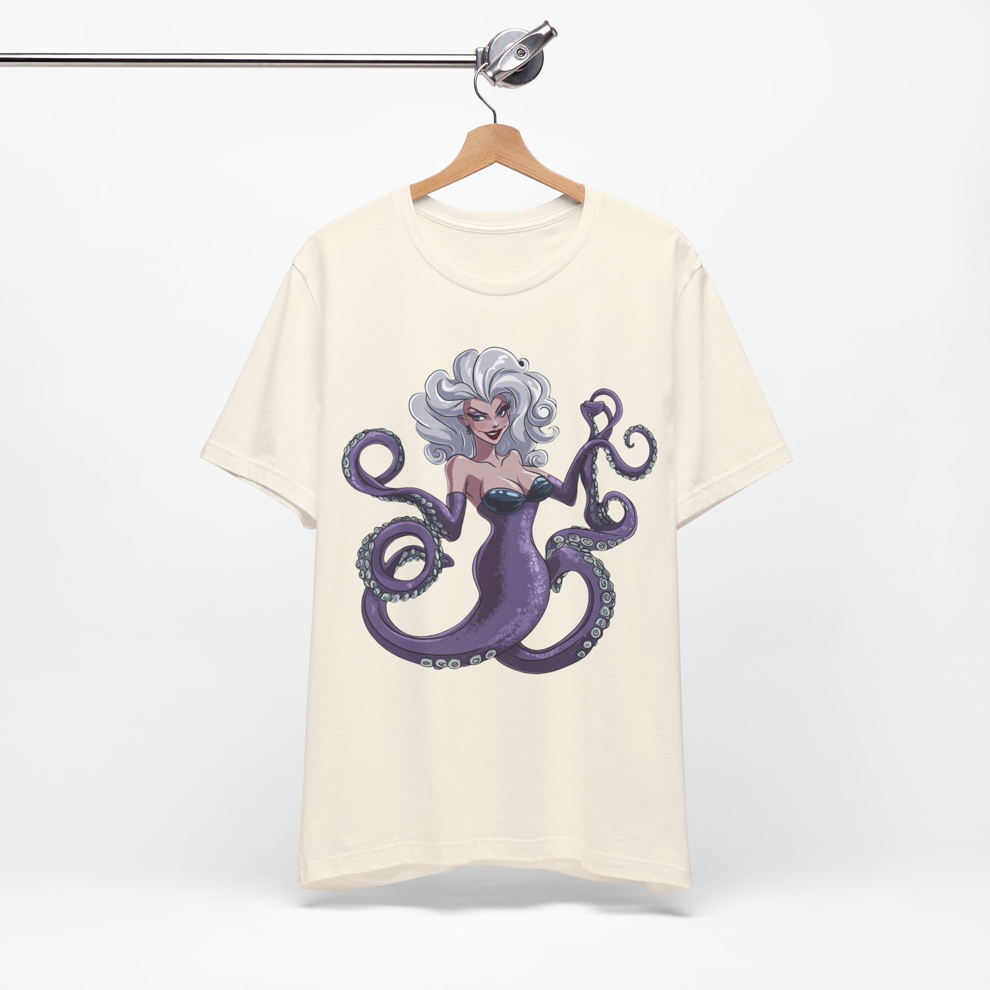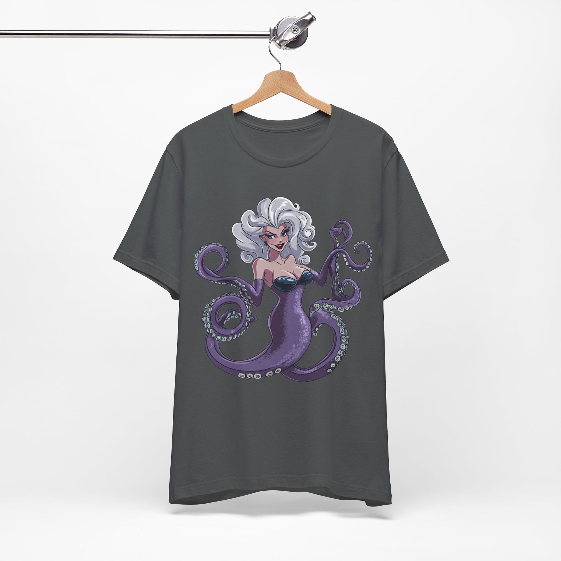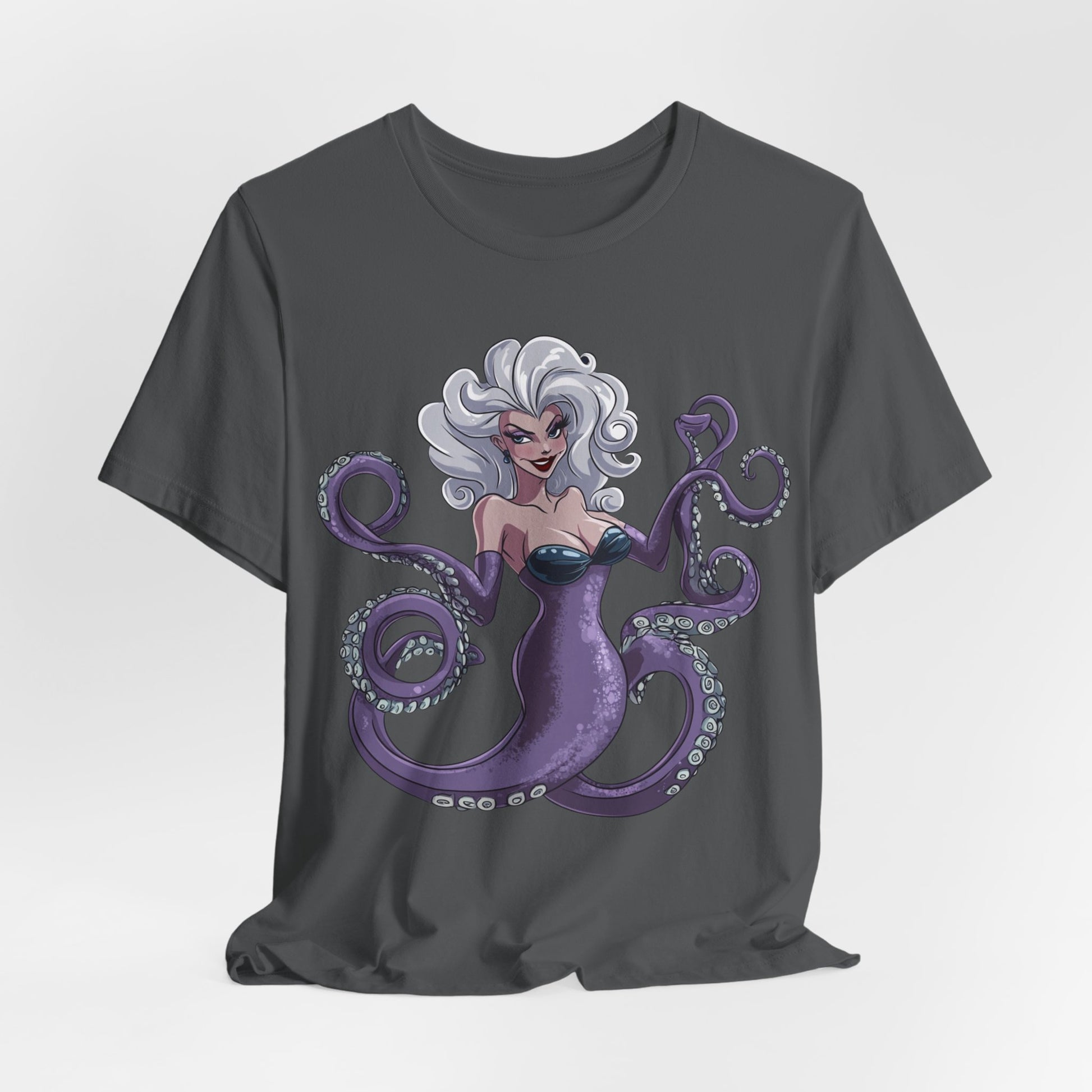 Make a splash with this bold and enchanting tee that’s as unforgettable as Ursula herself. Perfect for Disney fans, pop culture enthusiasts, or anyone looking to add a touch of undersea magic to their wardrobe!