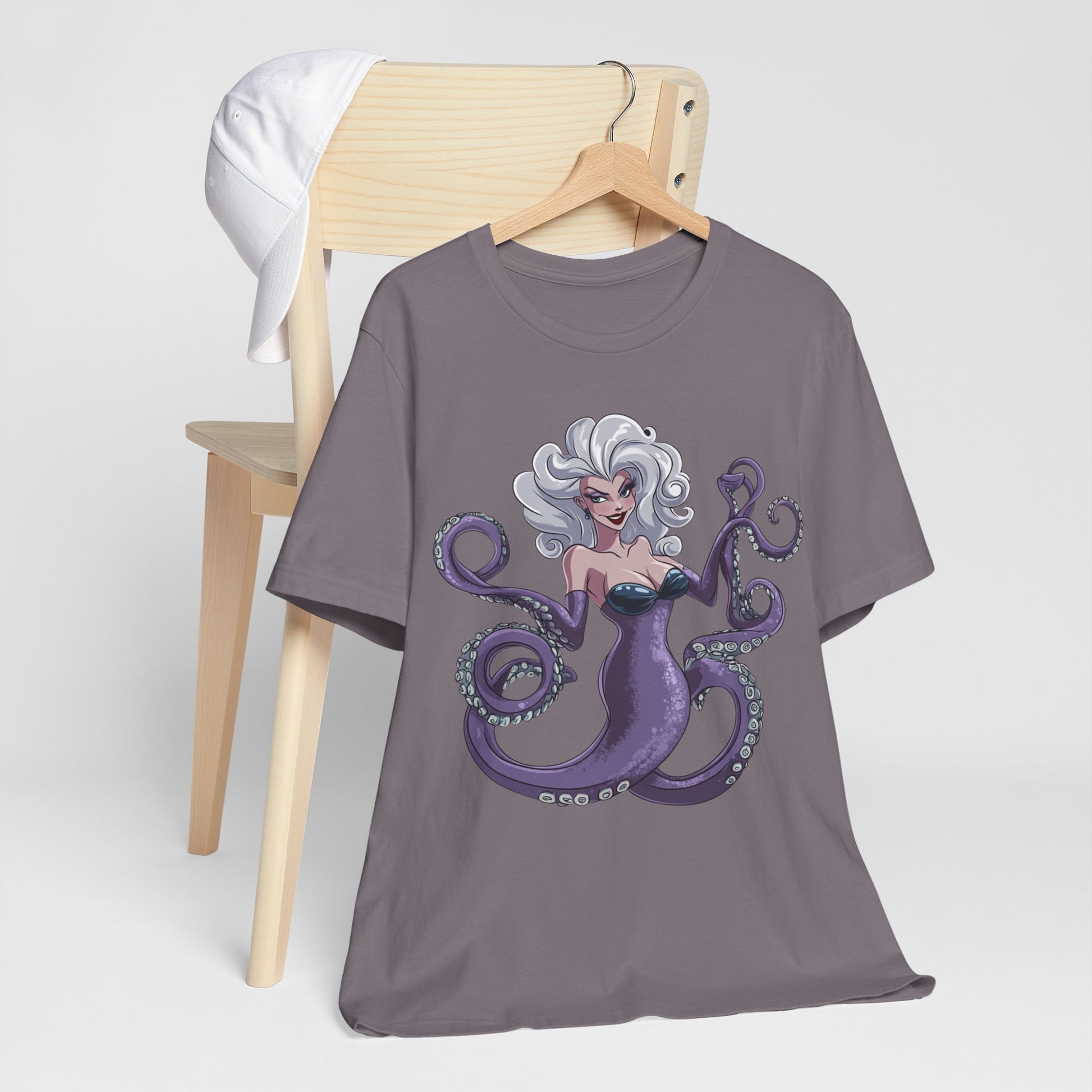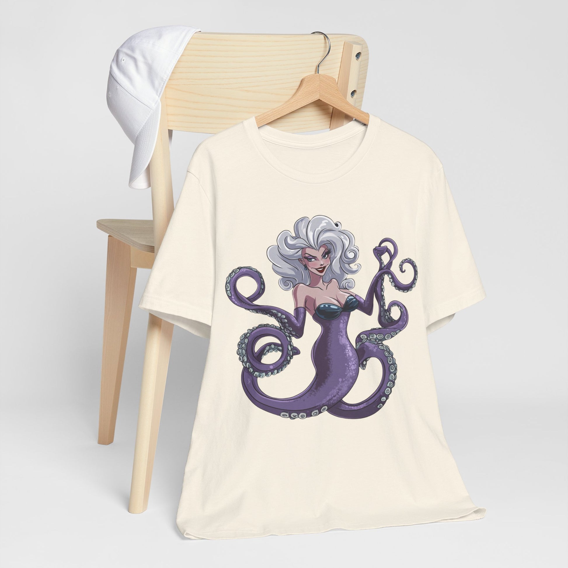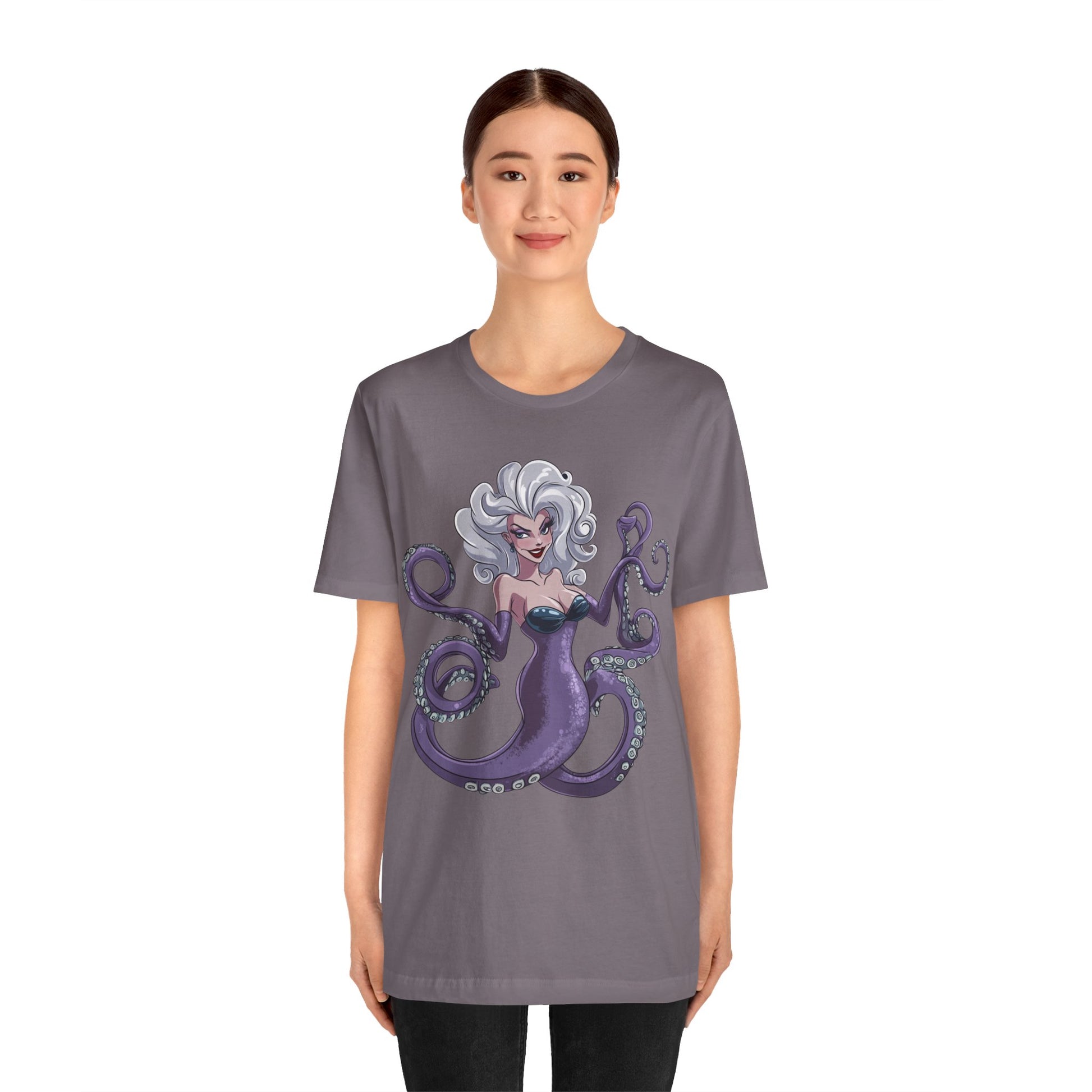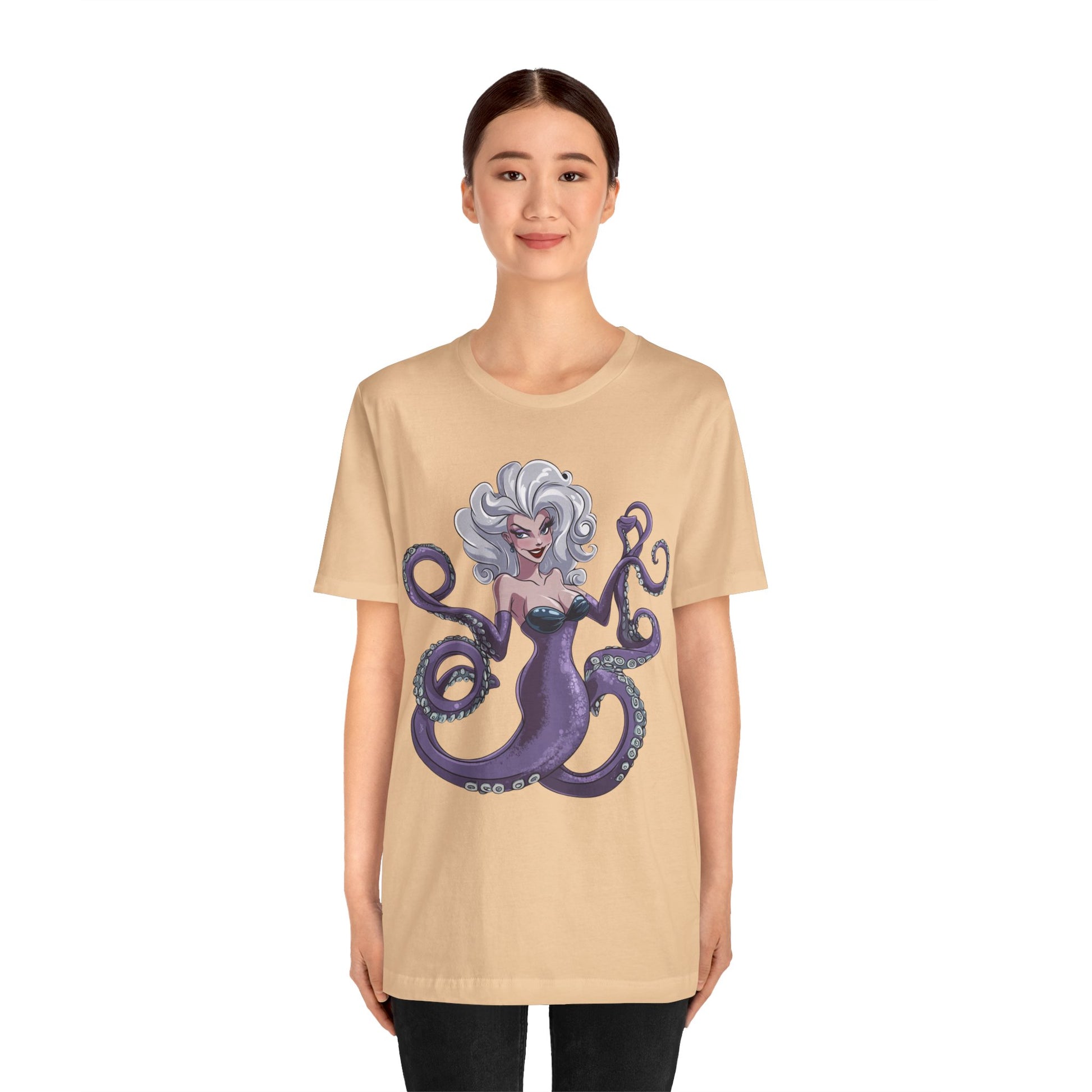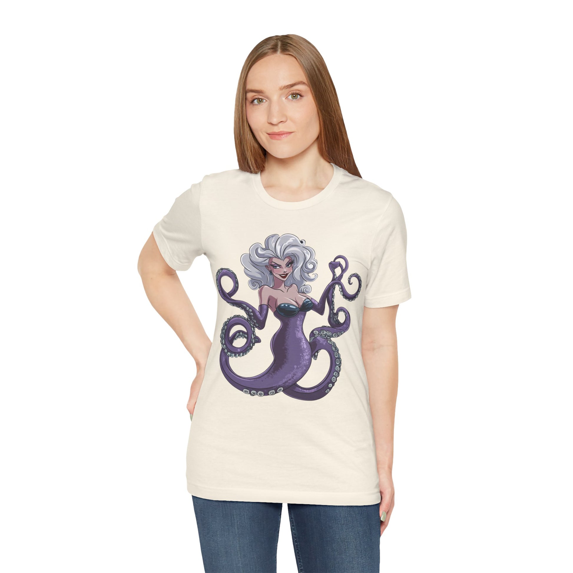 Make a splash with this bold and enchanting tee that’s as unforgettable as Ursula herself. Perfect for Disney fans, pop culture enthusiasts, or anyone looking to add a touch of undersea magic to their wardrobe!