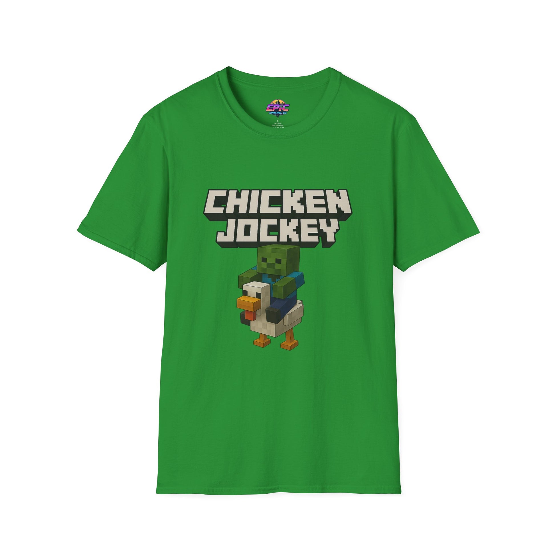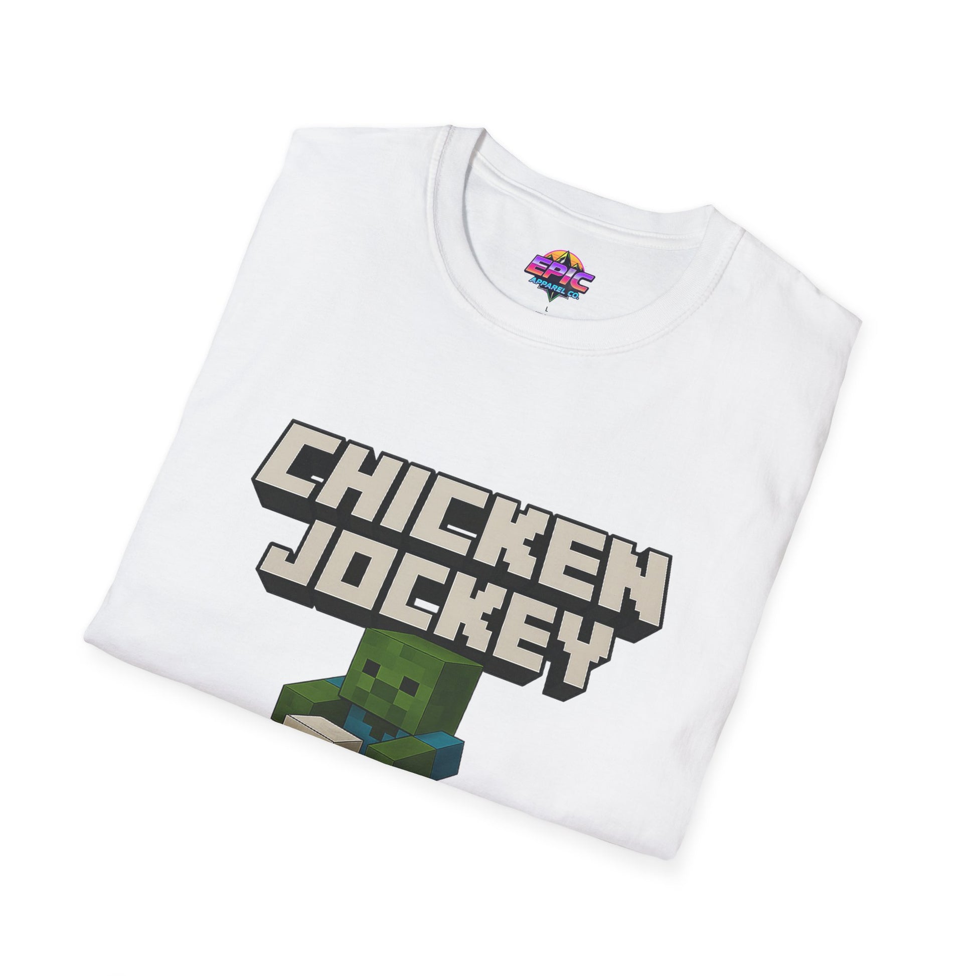 Ride into blocky battle with our hilarious Chicken Jockey tee – inspired by one of Minecraft’s most unexpected mobs! This Unisex Softstyle T-Shirt blends soft comfort with bold, pixel-perfect style, featuring a baby zombie riding a chicken in iconic Minecraft fashion. Whether you're crafting at home or heading out with your crew, this shirt's got the vibe. Perfect for gamers, streamers, and fans of the new Minecraft movie – it’s a standout gift for birthdays, gaming nights, or just showing off your love for the game. Level up your wardrobe with a design that’s as unique as your build!